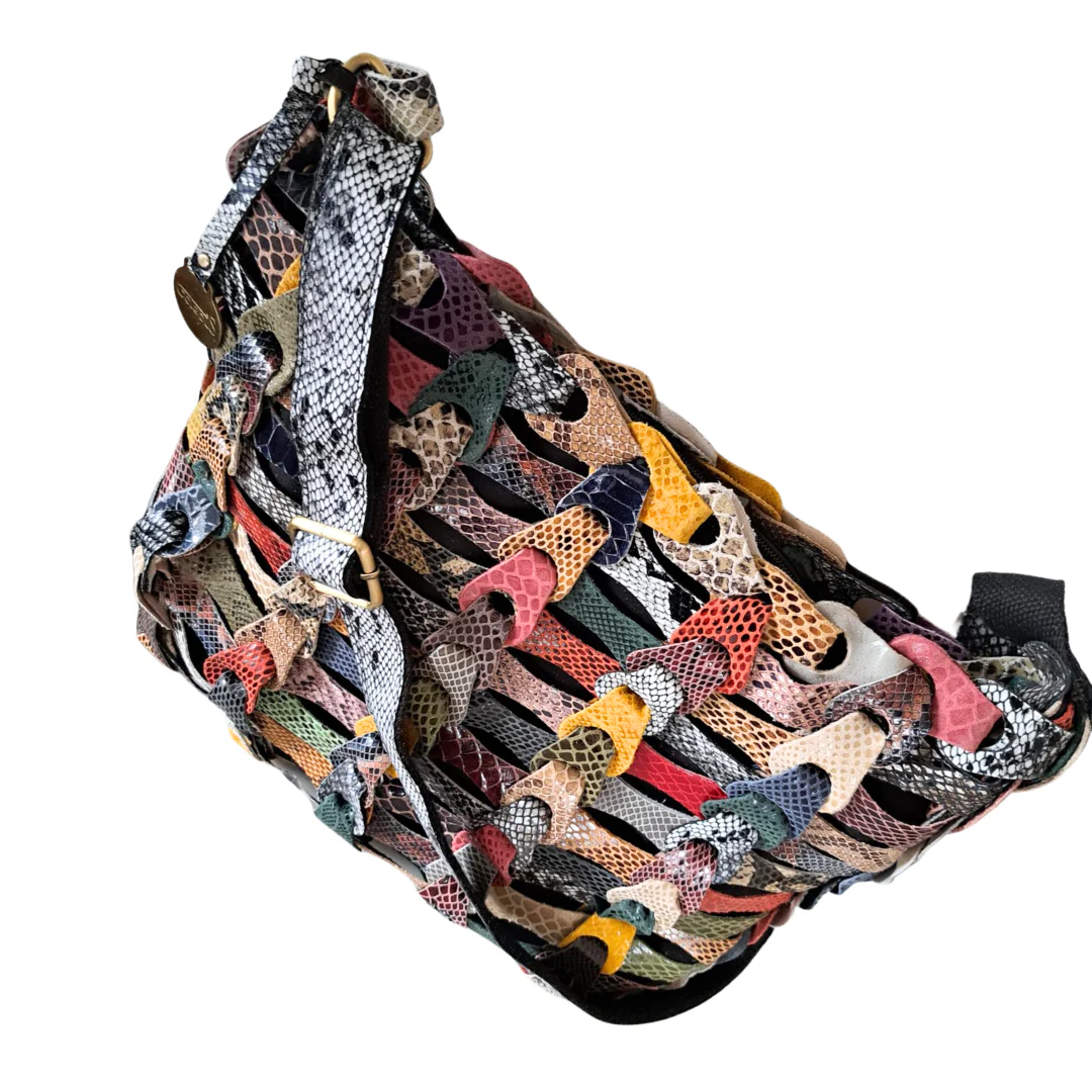 Taske til skulder: Style Annabella i multifarve af slangepræget læder. Klassisk håndflettet skuldertaske