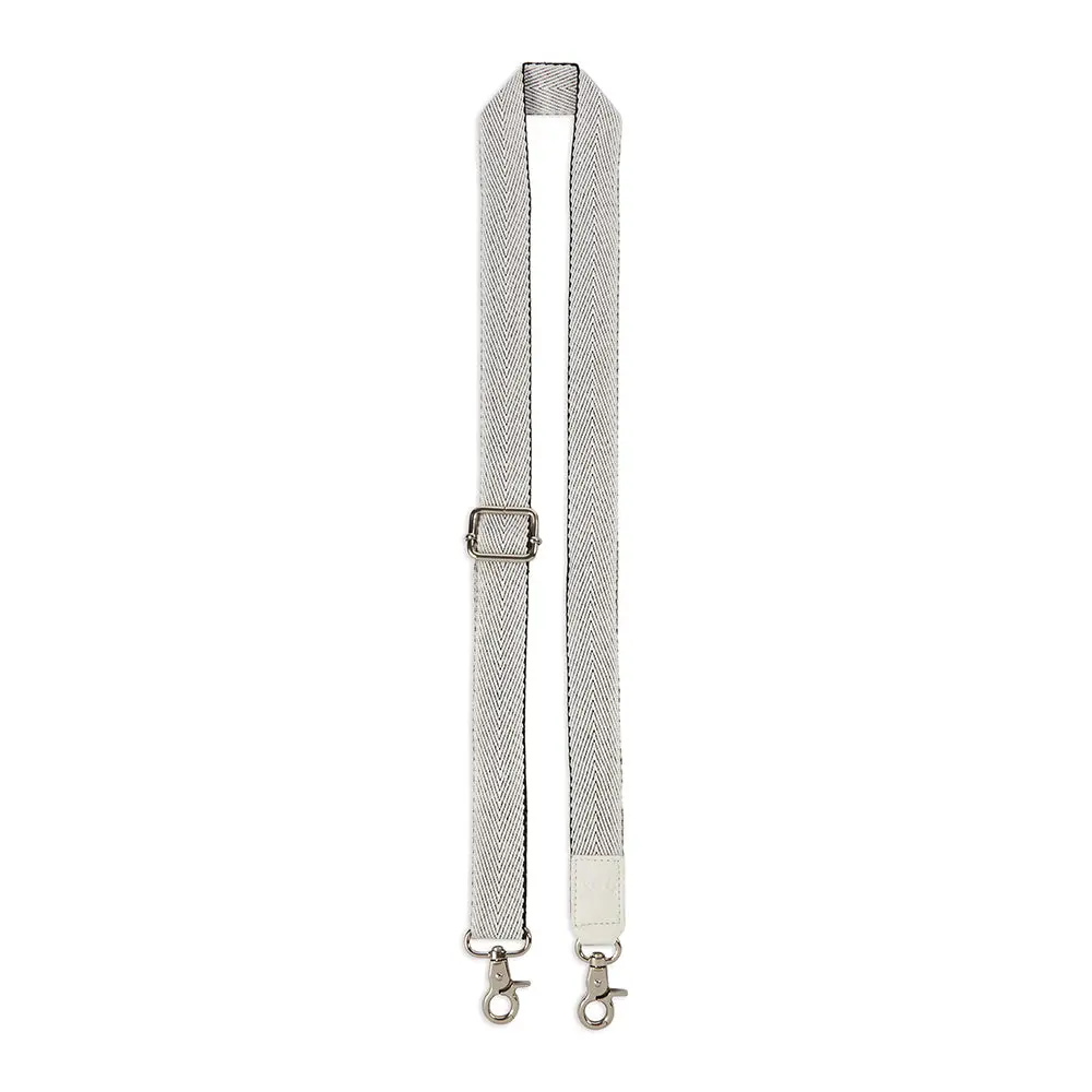 C55 - Justerbar rem til tasker. Materiale: Kanvas. Farve: Hvid med sorte nuancer og karabiner i sølv