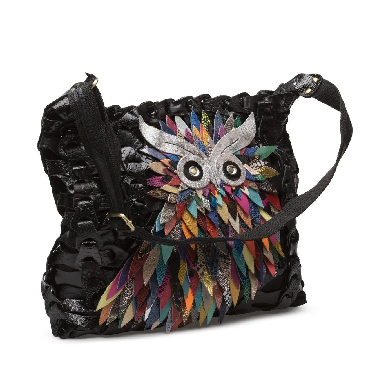 Style Ella i Sort/Multi. Den ikoniske ugletaske fra Octopus i flettet skind