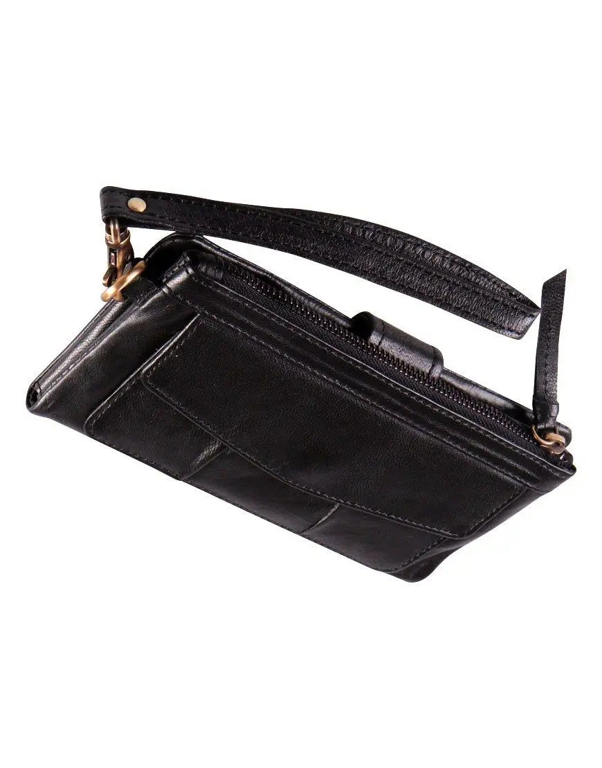 Dejlig pung/clutch i skønt, blødt skind med 7 kreditkort lommer, frontrum, lynlåsrum mv. Se de mange detaljer på billederne.