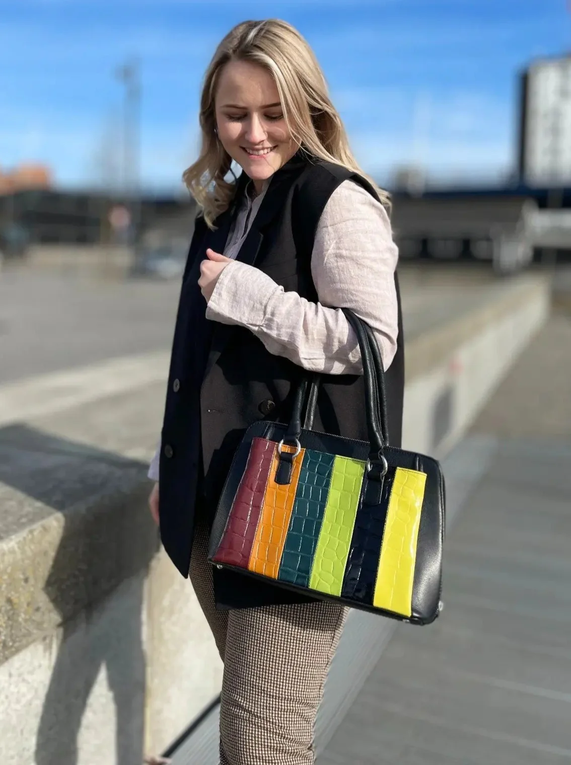 Style Jamaica i sommer-multi (kun et stk. på lager). Eksklusiv og iøjnefaldende hånd- & skuldertaske i kvalitetslæder