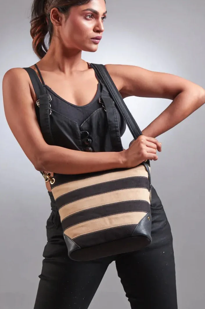 Style Kenya i sort/beige kanvas. Fantastisk crossbody / skuldertaske i kraftig og smuk kanvas med detaljer i læder