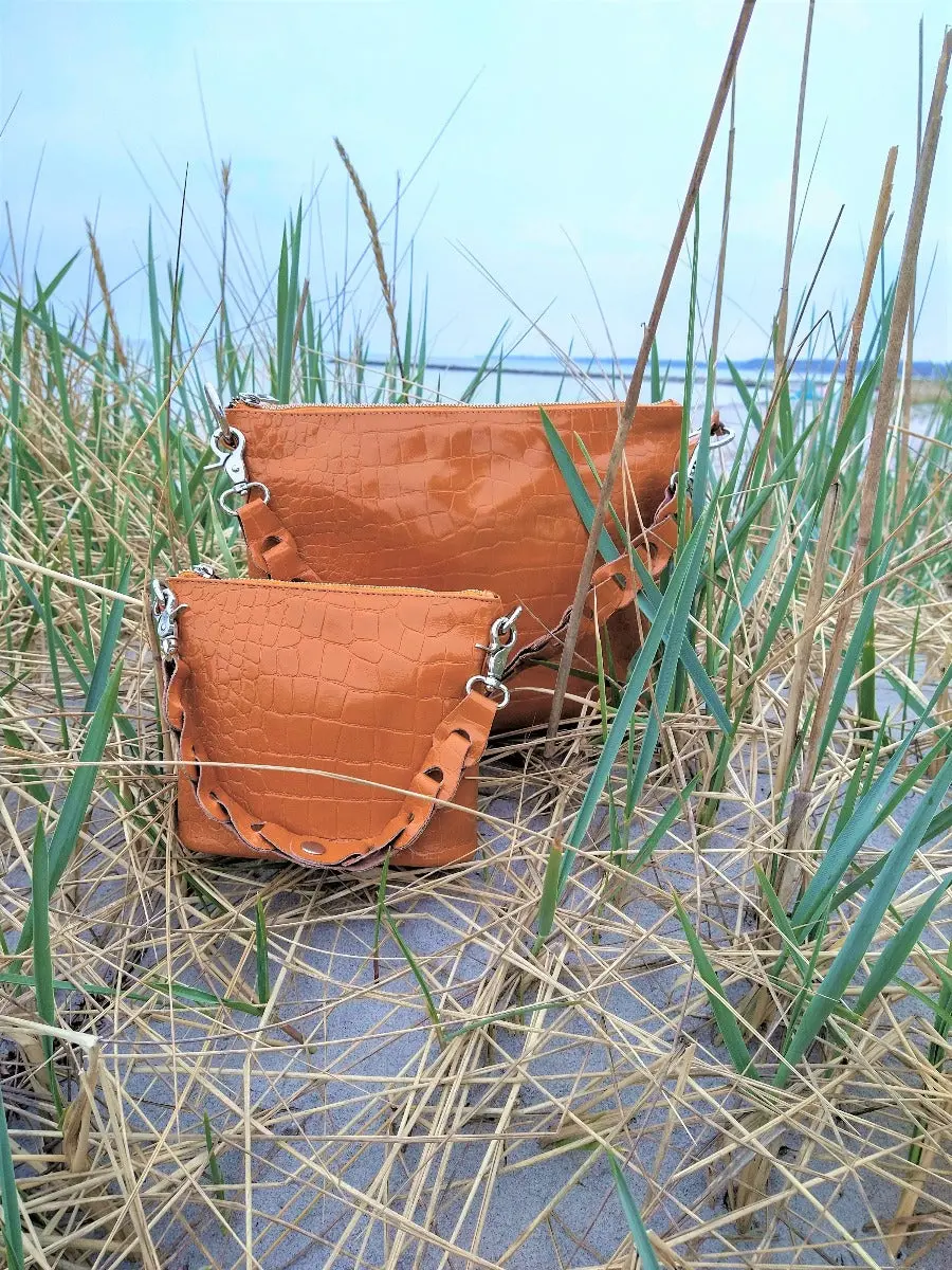 BEMÆRK: Da vi har én lang skulderrem i overskud fra style Kiss i orange (som er udsolgt), lægger vi denne sidste orange skulderrem sammen med den sidste style Limassol i orange. Remmen er aftagelig og justerbar så tasken også kan bæres på skulderen eller crossbody.
