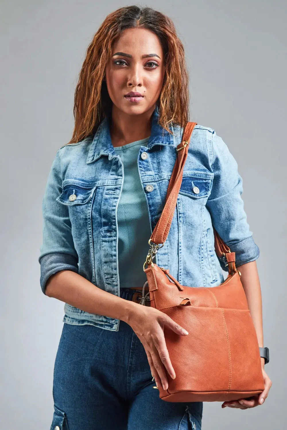 Style Malawi i flot cognacfarvet læder (kun få stk. på lager). Smuk combi rygsæk, skulder- og crossbodytaske