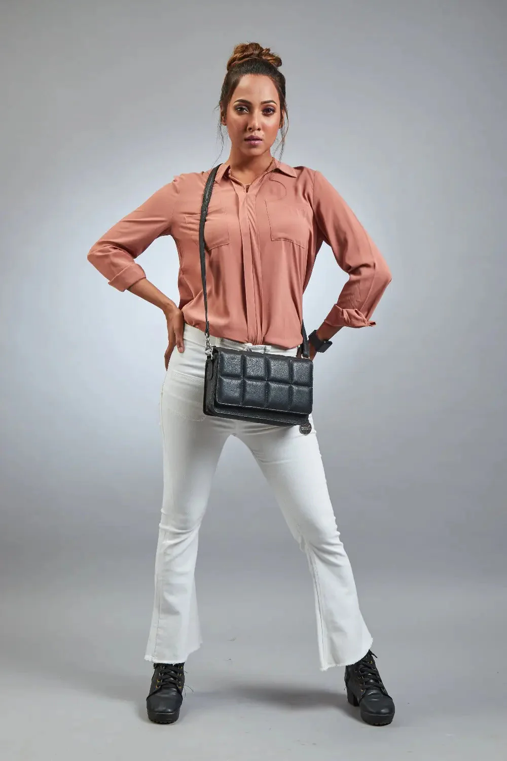 Style Malaysia i sort (kun få stk. på lager). Crossbody skuldertaske i læder med flot quiltet kvadratisk mønster