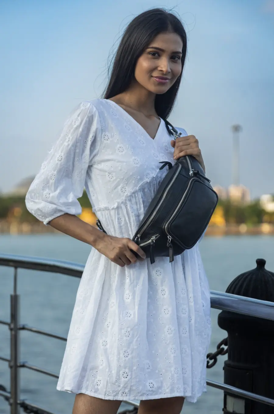 - Front: stor frontlomme samt to flotte mindre lynlåsrum på siderne