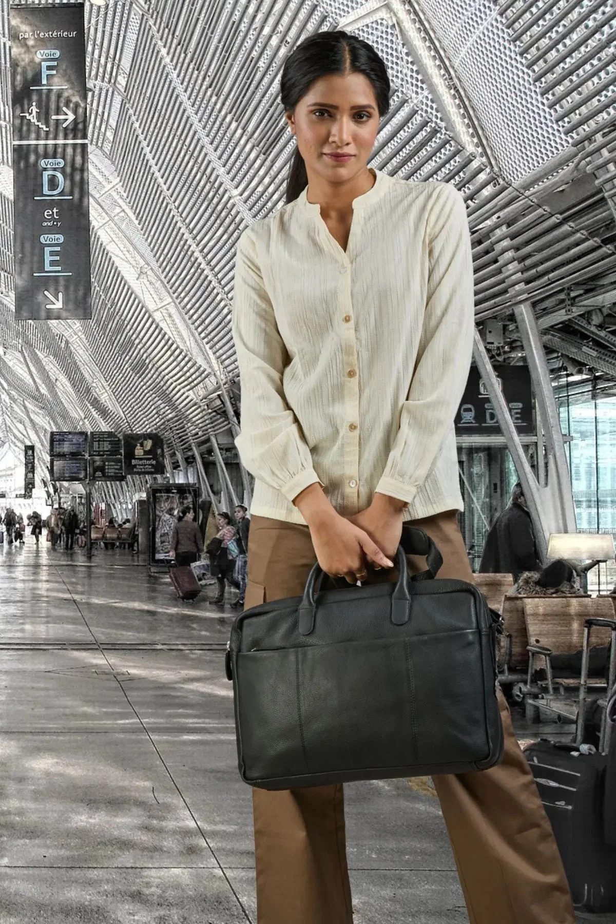 Style Ocean i smukt sort kvalitetslæder. Fed unisex rejse- og arbejdstaske med plads til din laptop