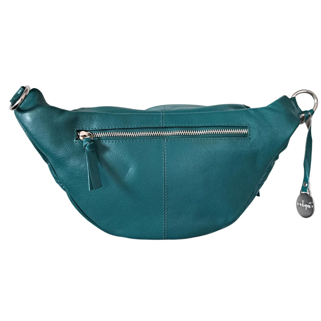 Style Quinde i suveræn turkisfarvet læder. Stor bumbag taske i kraftigt læder med flotte nitter