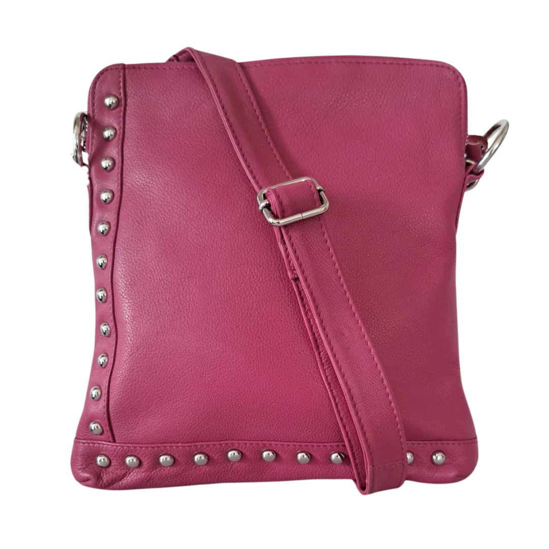 Style Quick i supersmukt pinkfarvet læder. Cool slingbag til skulder og crossbody m. flotte nitter